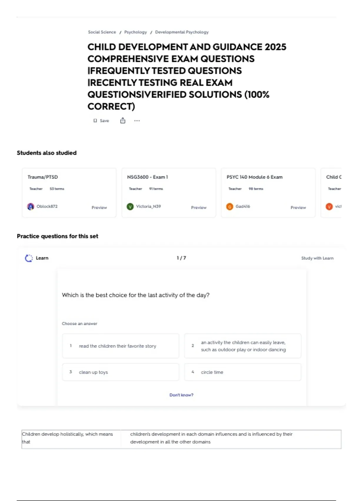 Trauma/PTSD NSG3600 - Exam 1 PSYC 140 Module 6 Exam Child C