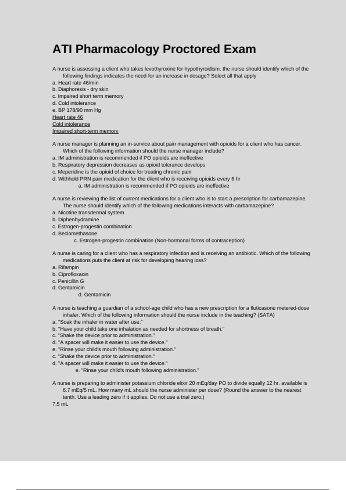 ATI PHARMACOLOGY PROCTORED CASE EXAM STUDY 2026 GRADED A+