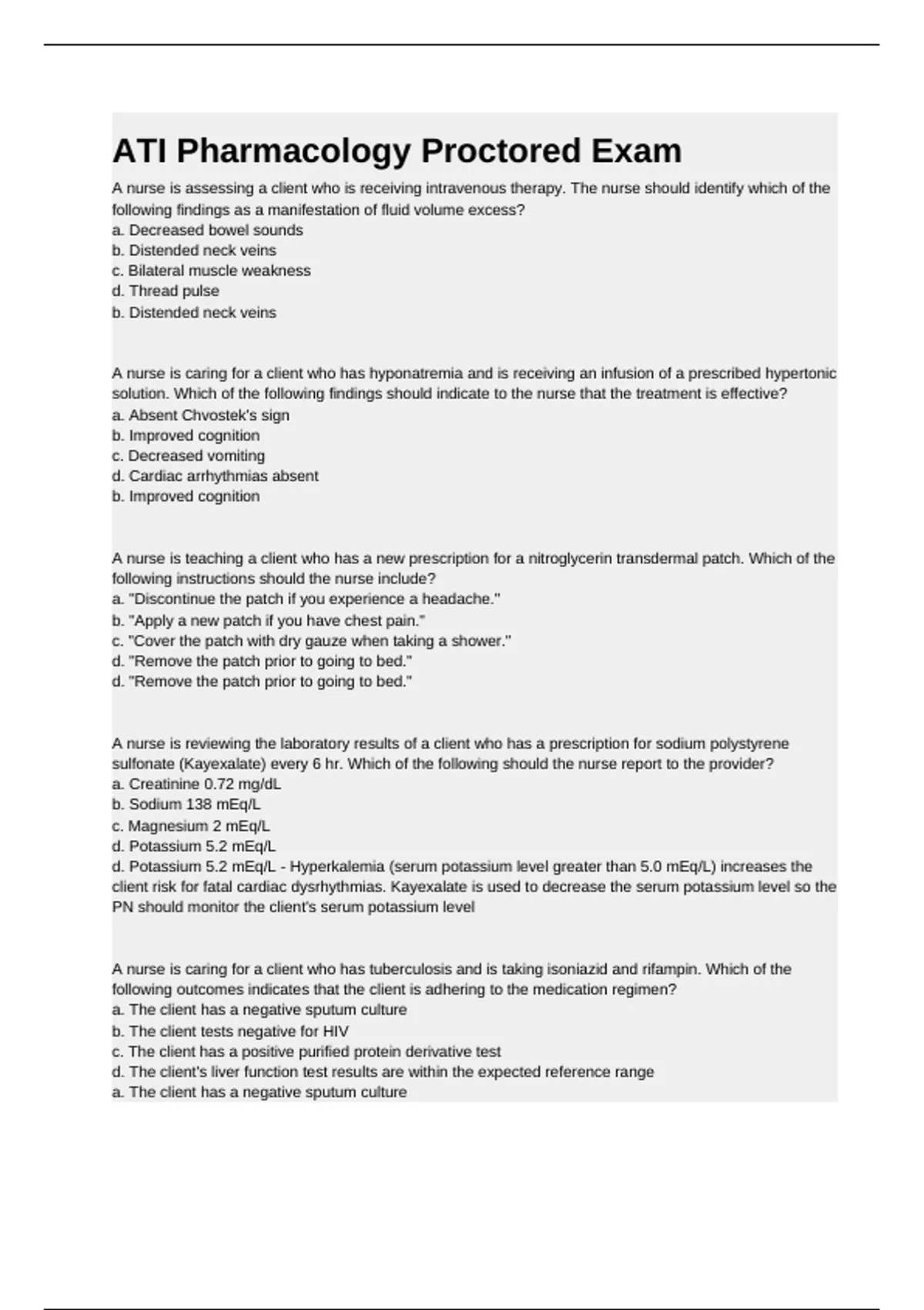 client risk for fatal cardiac dysrhythmias. Kayexalate is used to decrease the serum potassium level so the