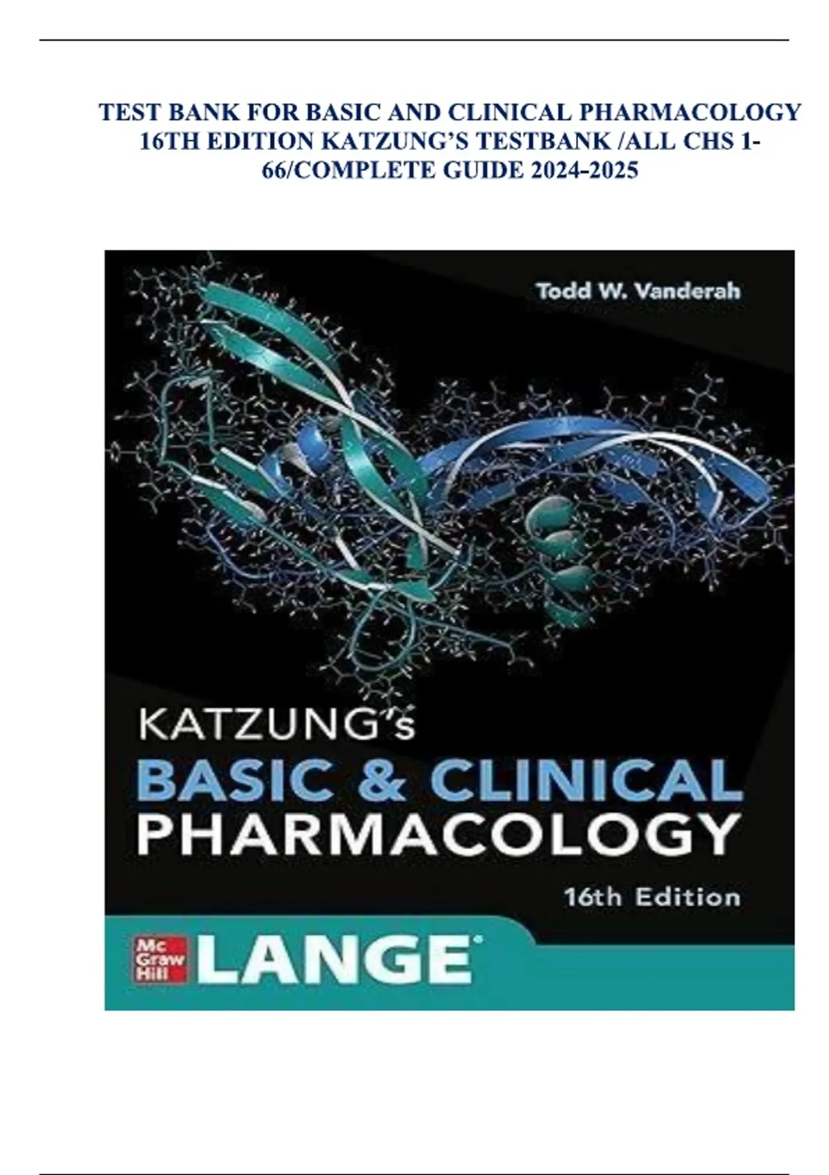 Test Bank for Basic and Clinical Pharmacology, 16th Edition (Katzung)