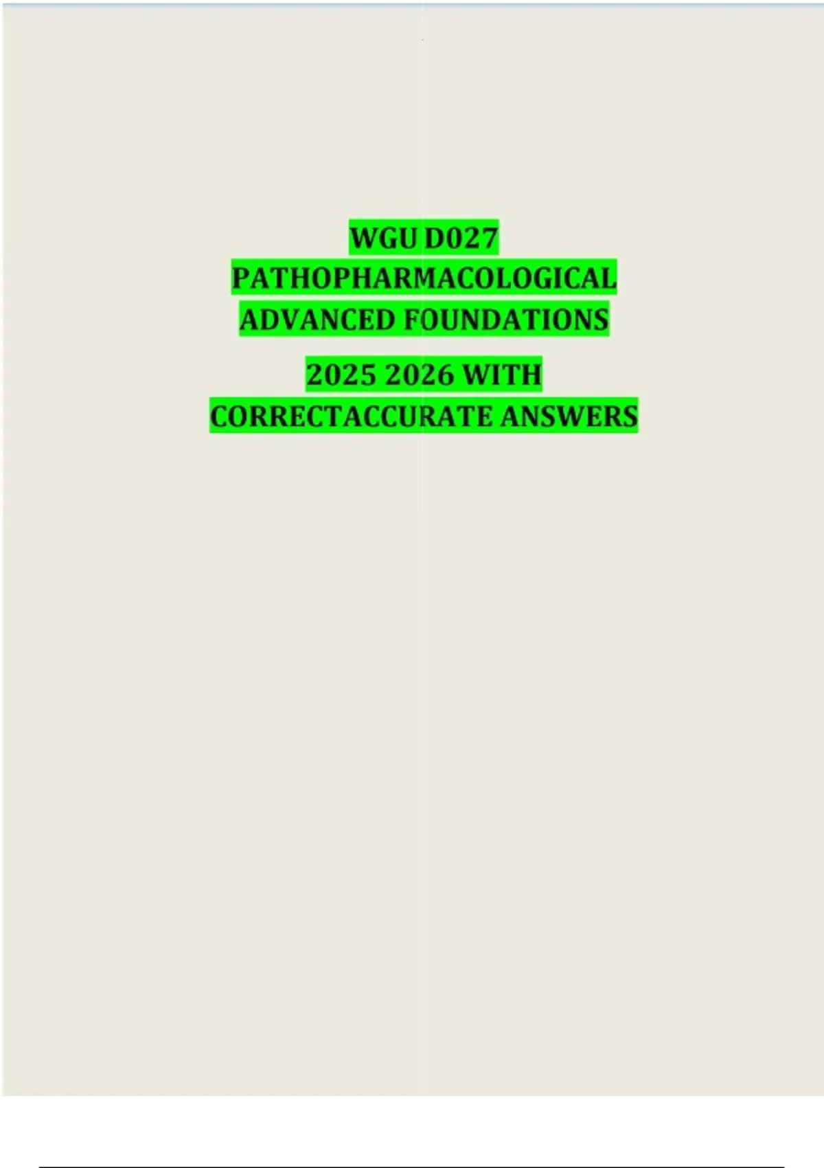 WGU D027 PATHOPHARMACOLOGICAL ADVANCED FOUNDATIONS WITH CORRECTACCURATE ANSWERS