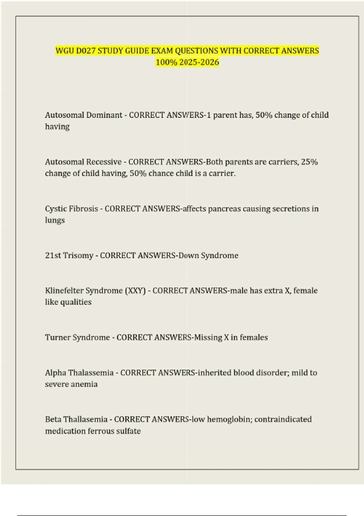 wgu d027 study guide exam questions with correct a