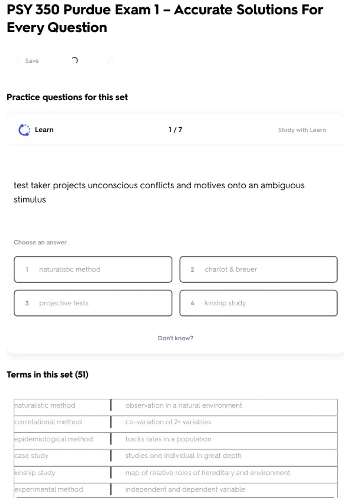 PSY 350 Purdue Exam 1 – Accurate Solutions For Every Question