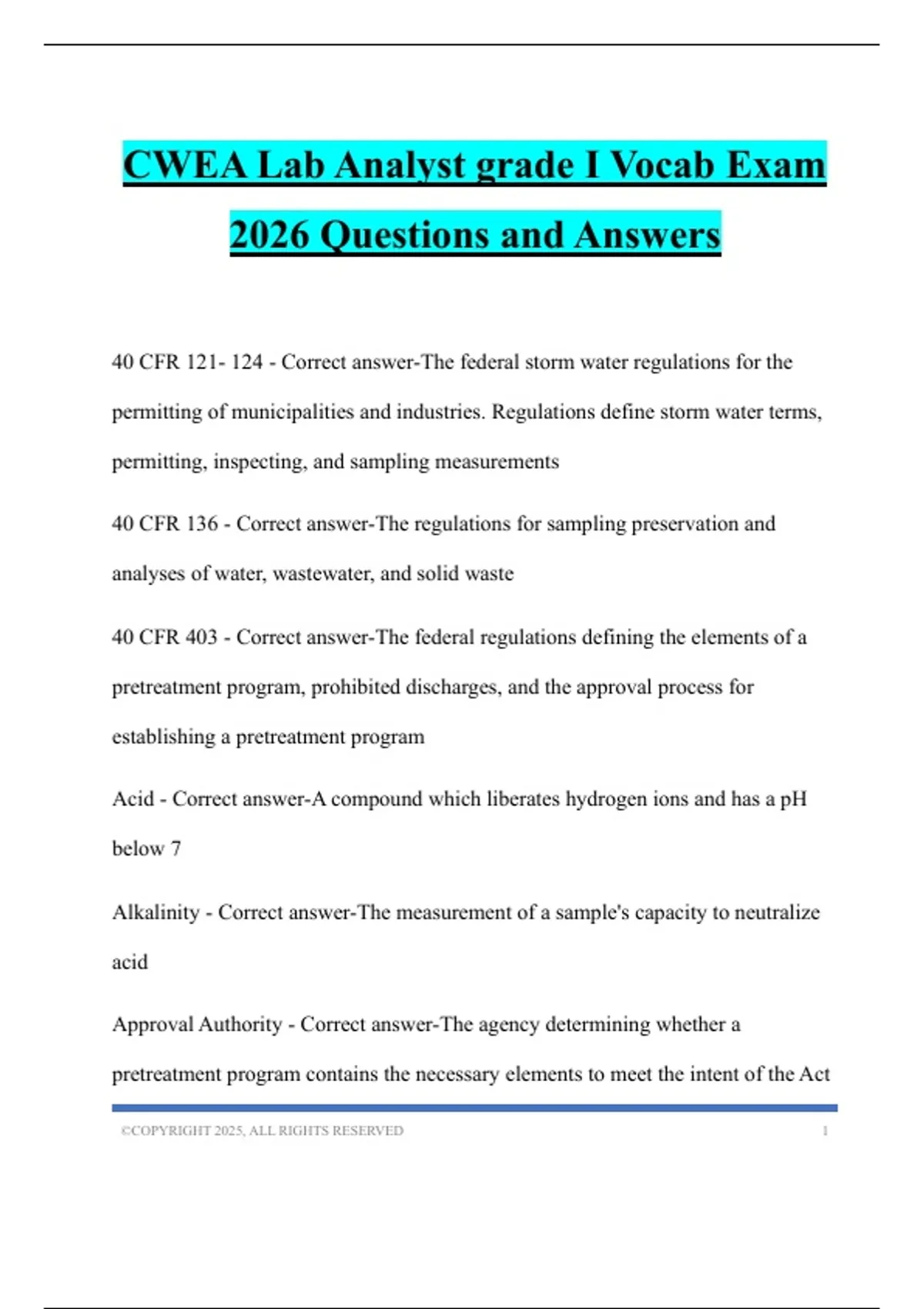 Alkalinity - Correct answer-The measurement of a sample's capacity to neutralize