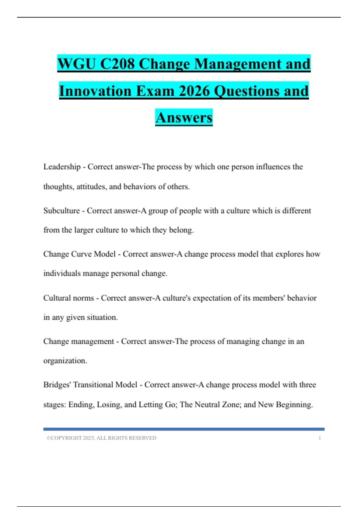 , Anticipatory change - Correct answer-A type of change that can be recognized in
