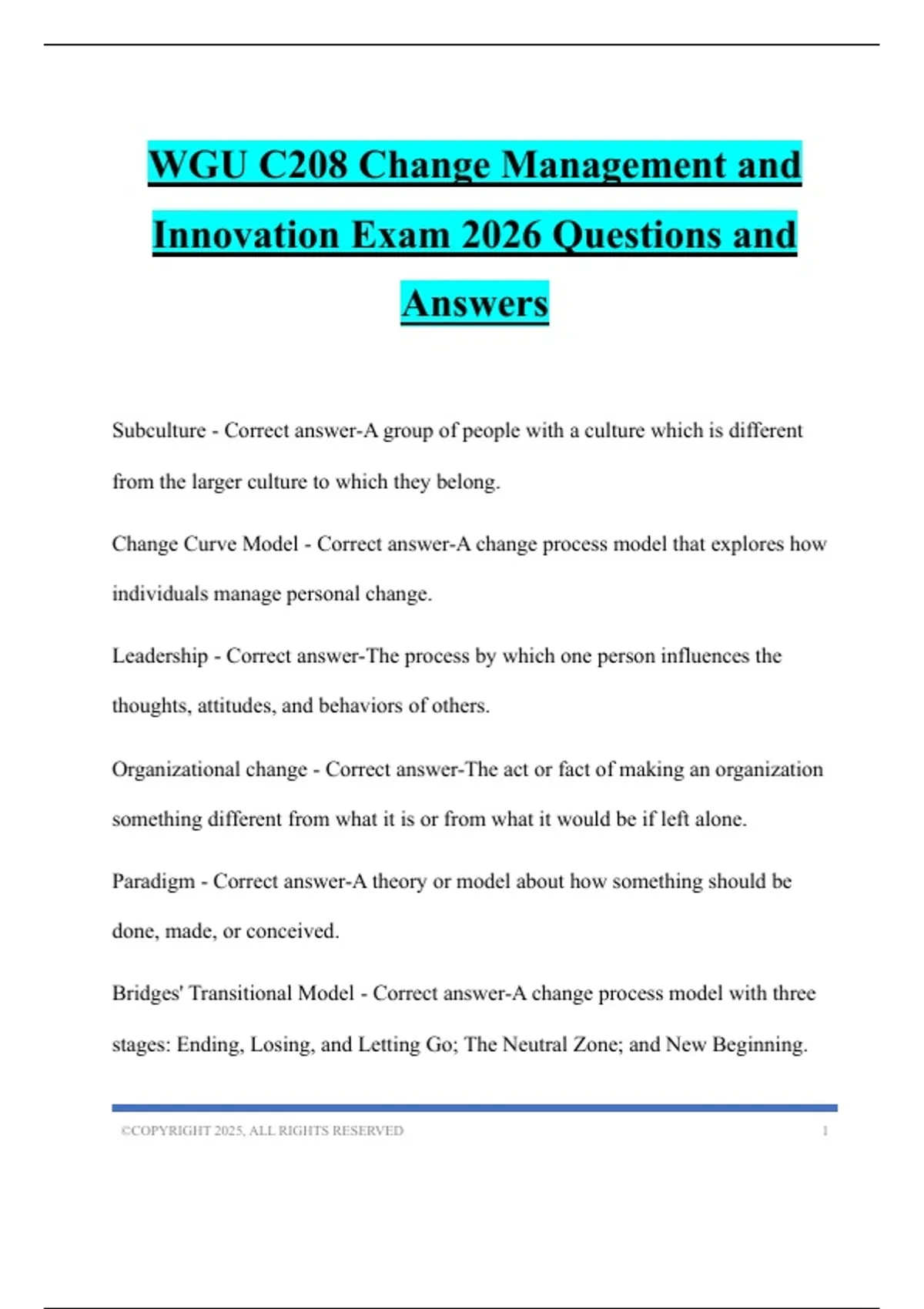 Bridges' Transitional Model - Correct answer-A change process model with three