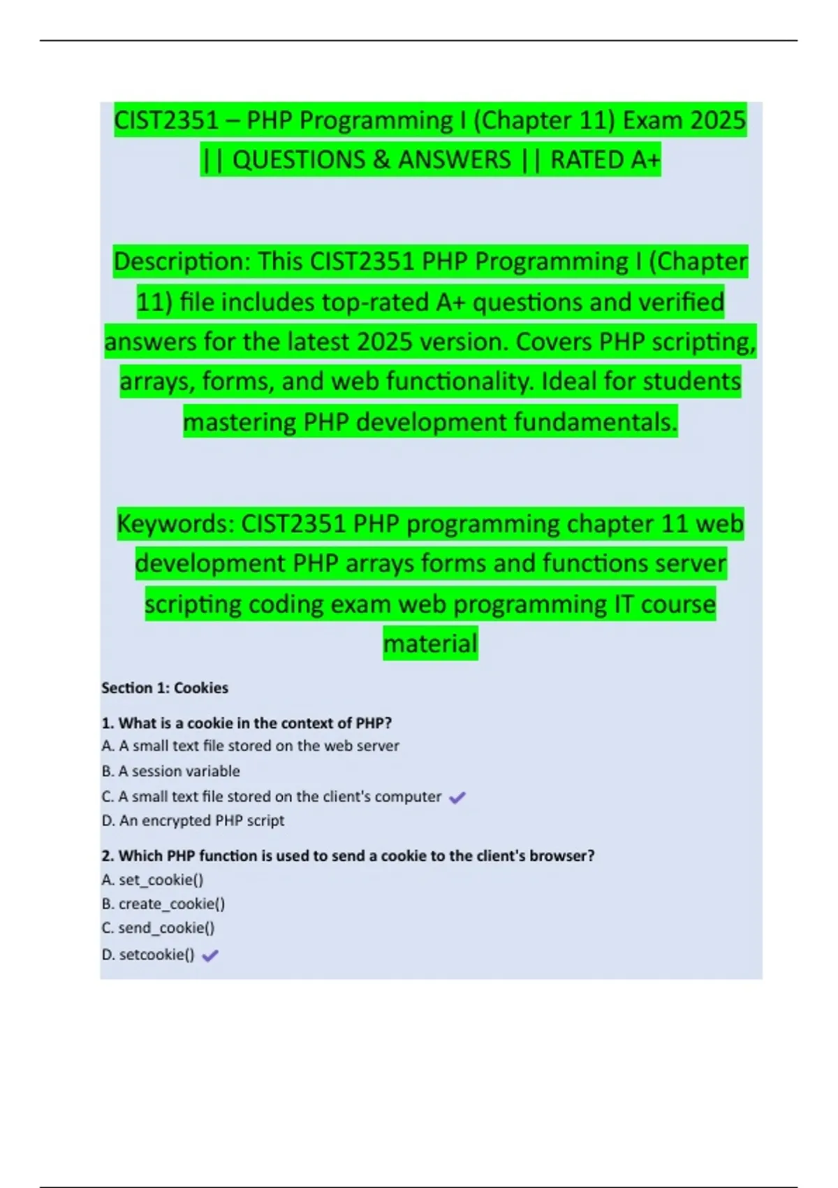 answers for the latest 2025 version. Covers PHP scripting,