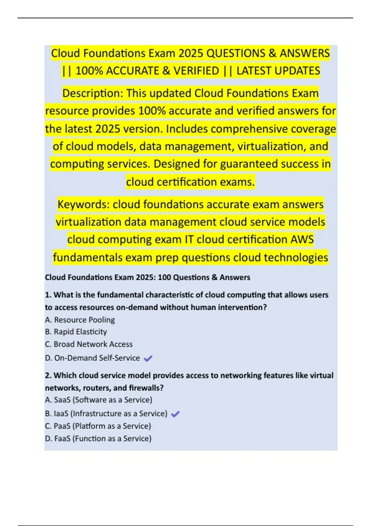 Cloud Foundations Exam 2025: 100 Questions & Answers