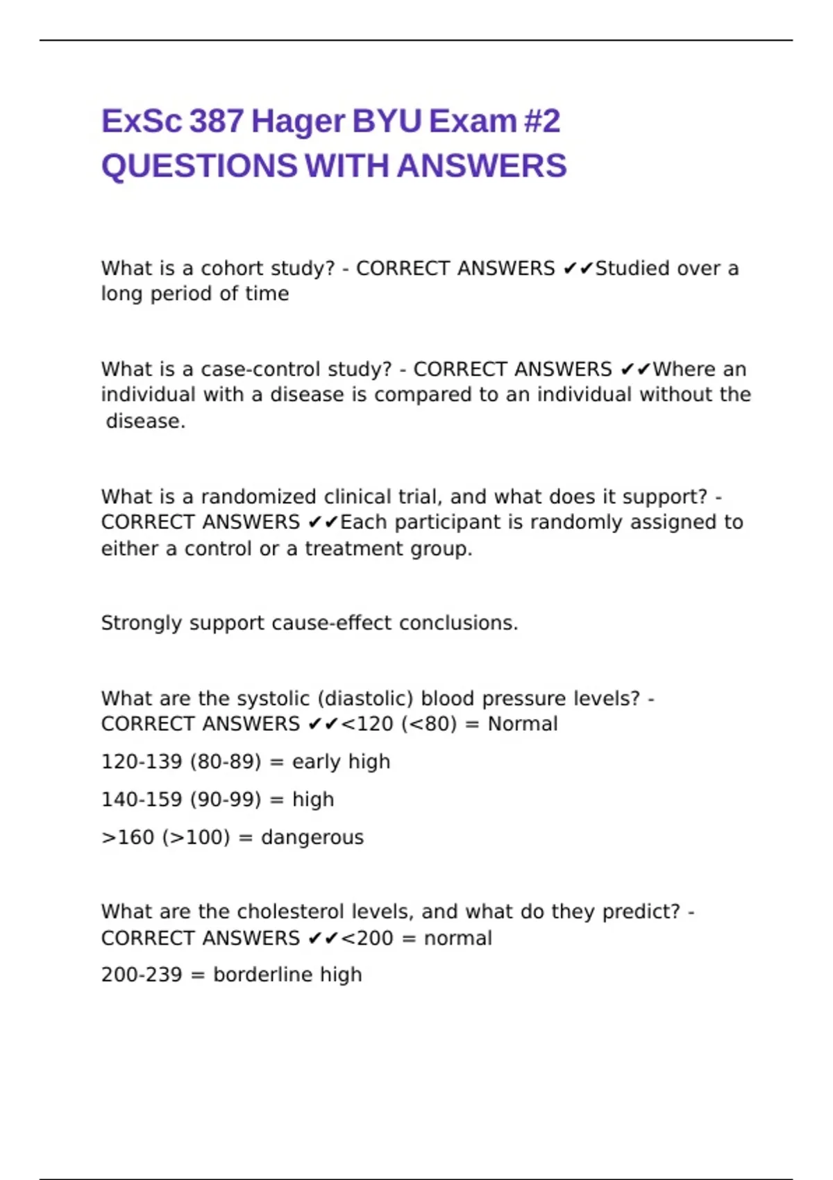 ExSc 387 Hager BYU Exam -2 QUESTIONS WITH ANSWERS.