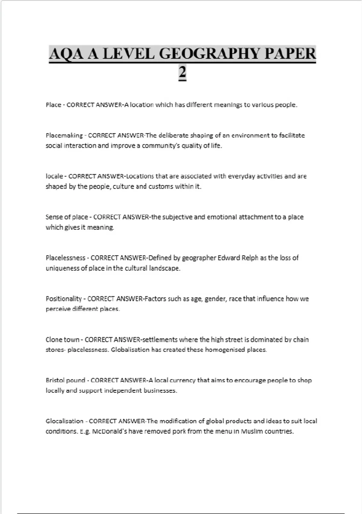 - AQA A LEVEL GEOGRAPHY PAPER 2