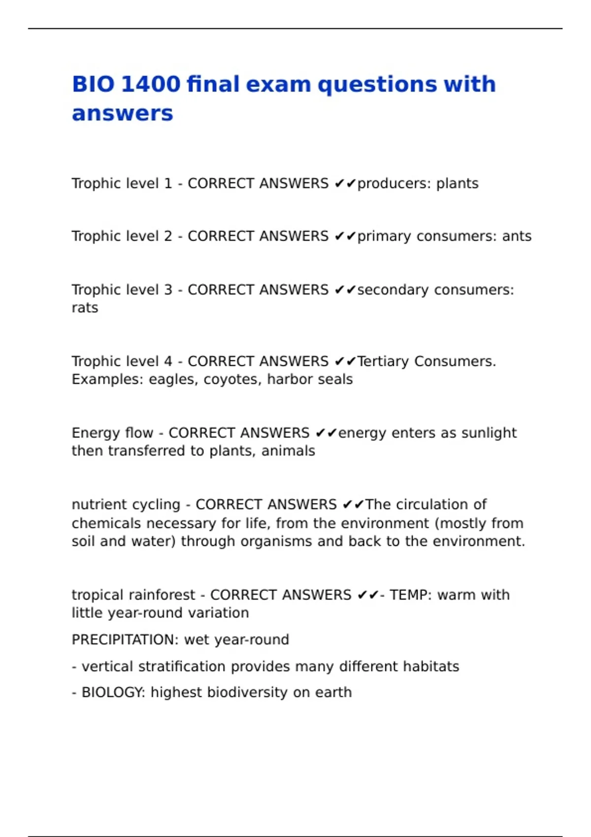 Trophic level 1 - CORRECT ANSWERS ✔✔producers: plants