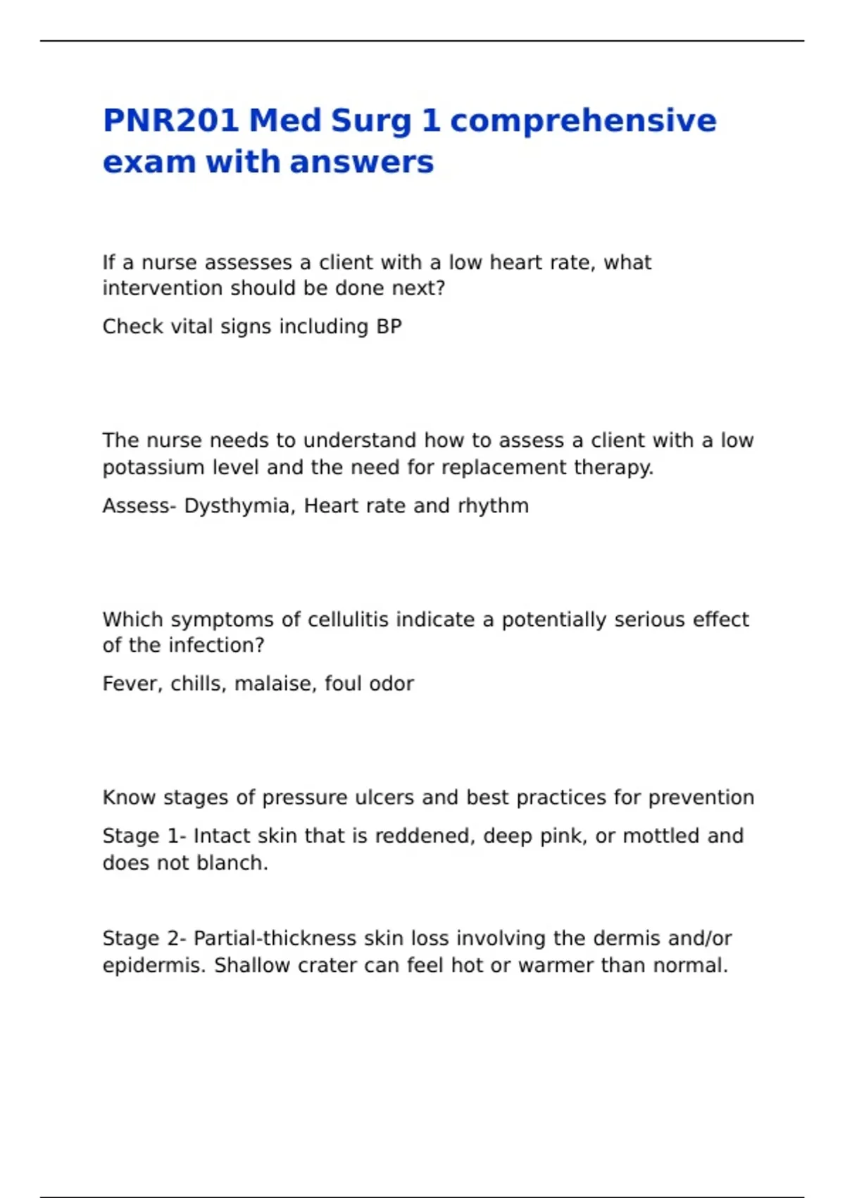 PNR201 Med Surg 1 comprehensive exam with answers.