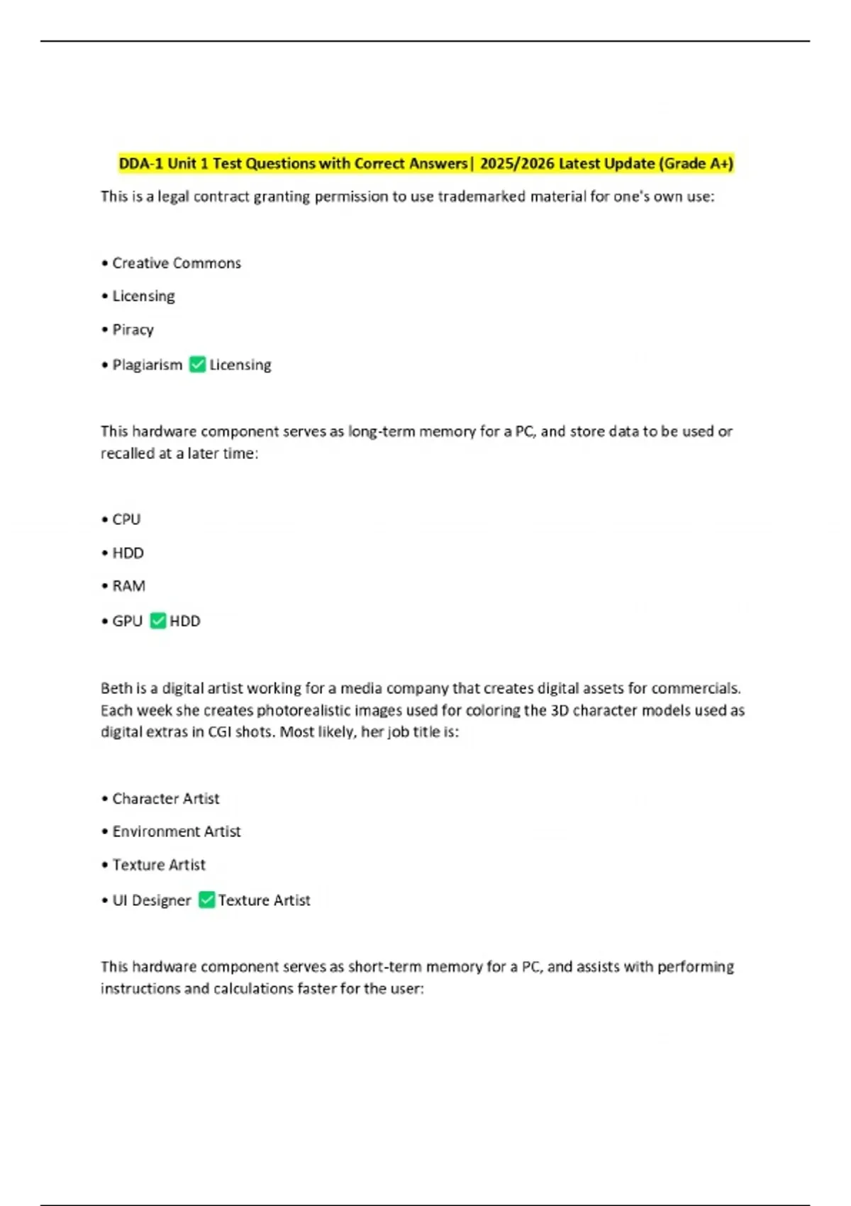 DDA-1 Unit 1 Test Questions with Correct Answers| 2025/2026 Latest Update (Grade A+)