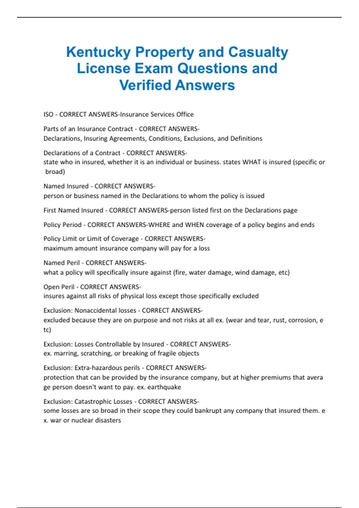 Kentucky Property and Casualty License Exam Questions and Verified Answers