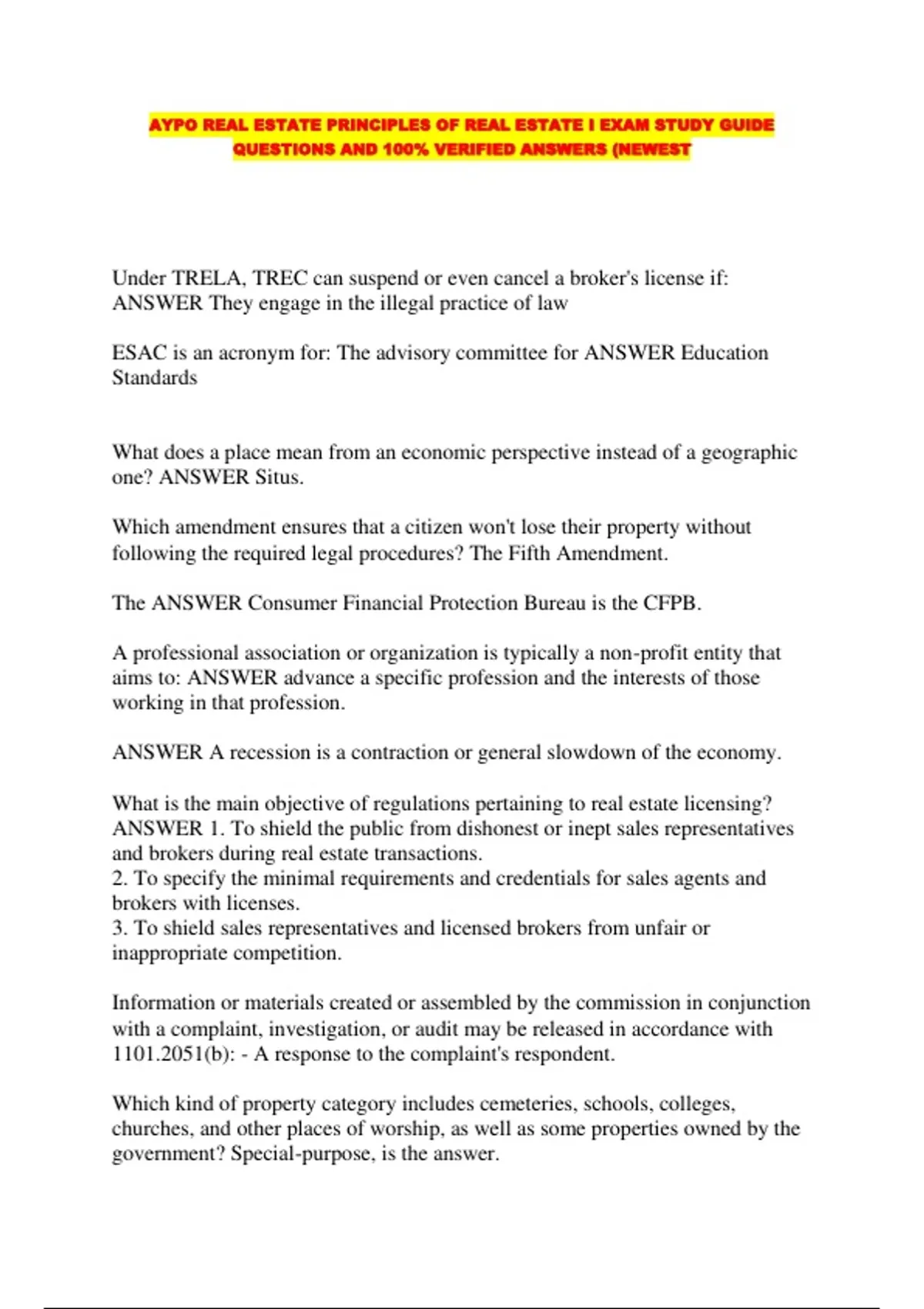 AYPO REAL ESTATE PRINCIPLES OF REAL ESTATE I EXAM STUDY GUIDE
