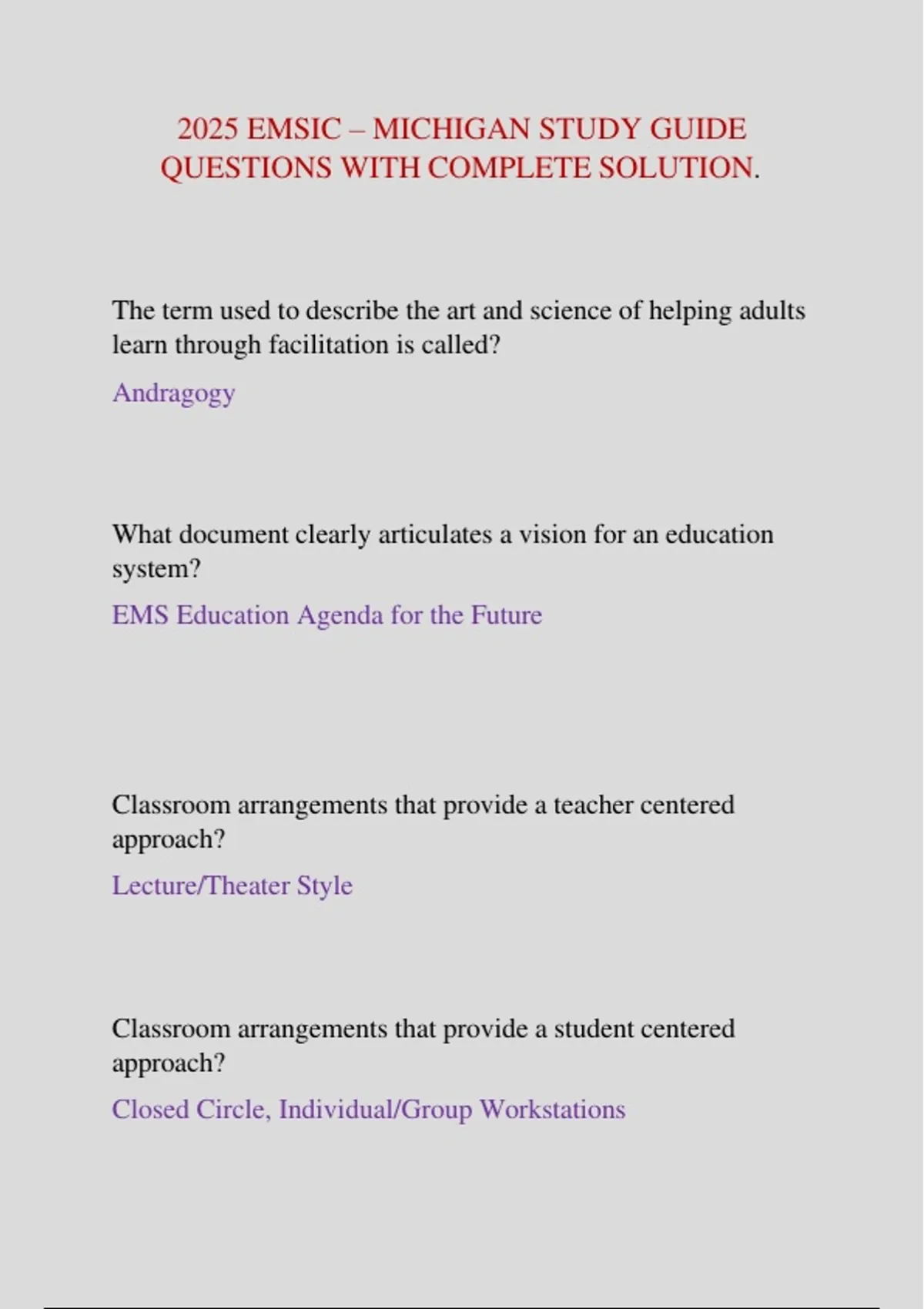 2025 EMSIC – Michigan Study Guide | Exam Questions with Complete Verified Solutions | Latest 2025/2026 Update