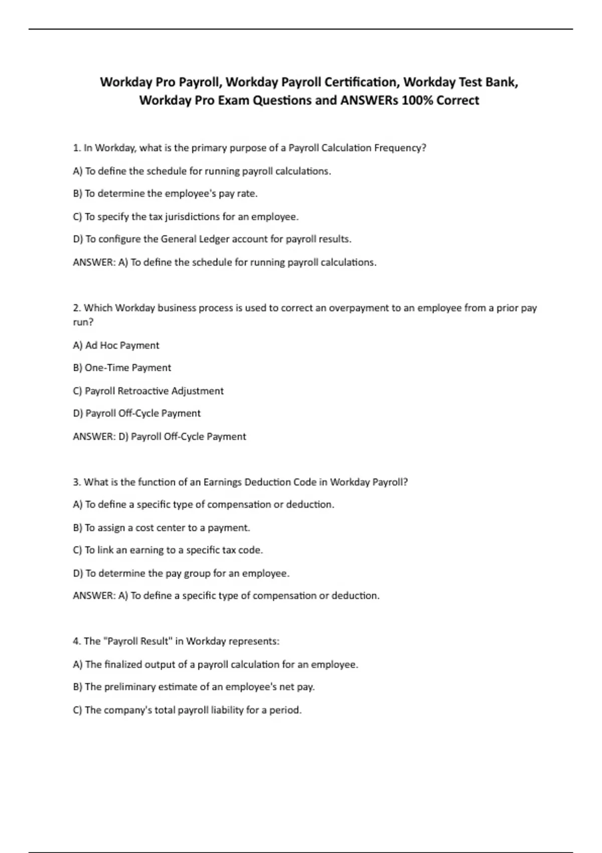 Workday Pro Exam Questions and ANSWERs 100% Correct