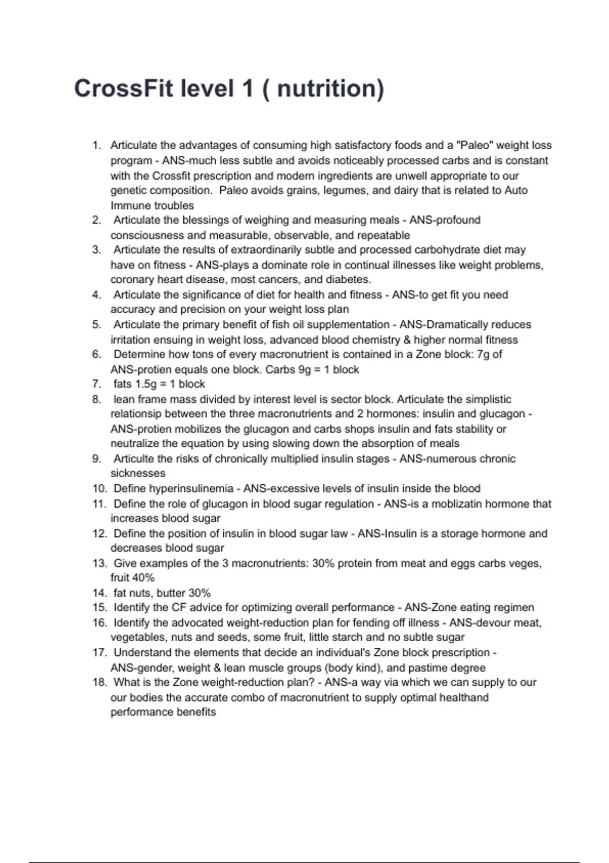 18. What is the Zone weight-reduction plan? - ANS-a way via which we can supply to our