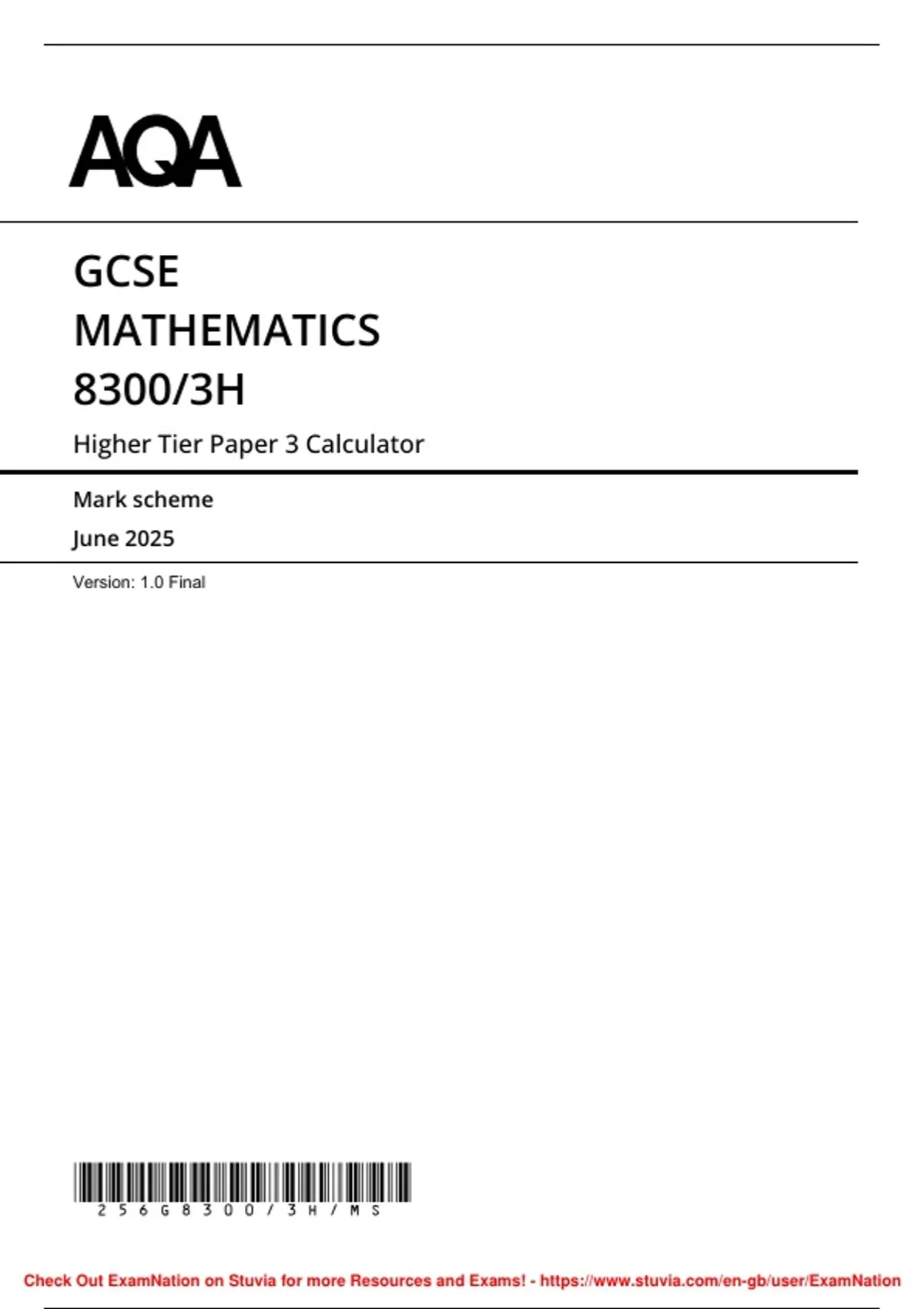 GCSE Mathematics AQA Paper 3 Higher Markscheme 2025
