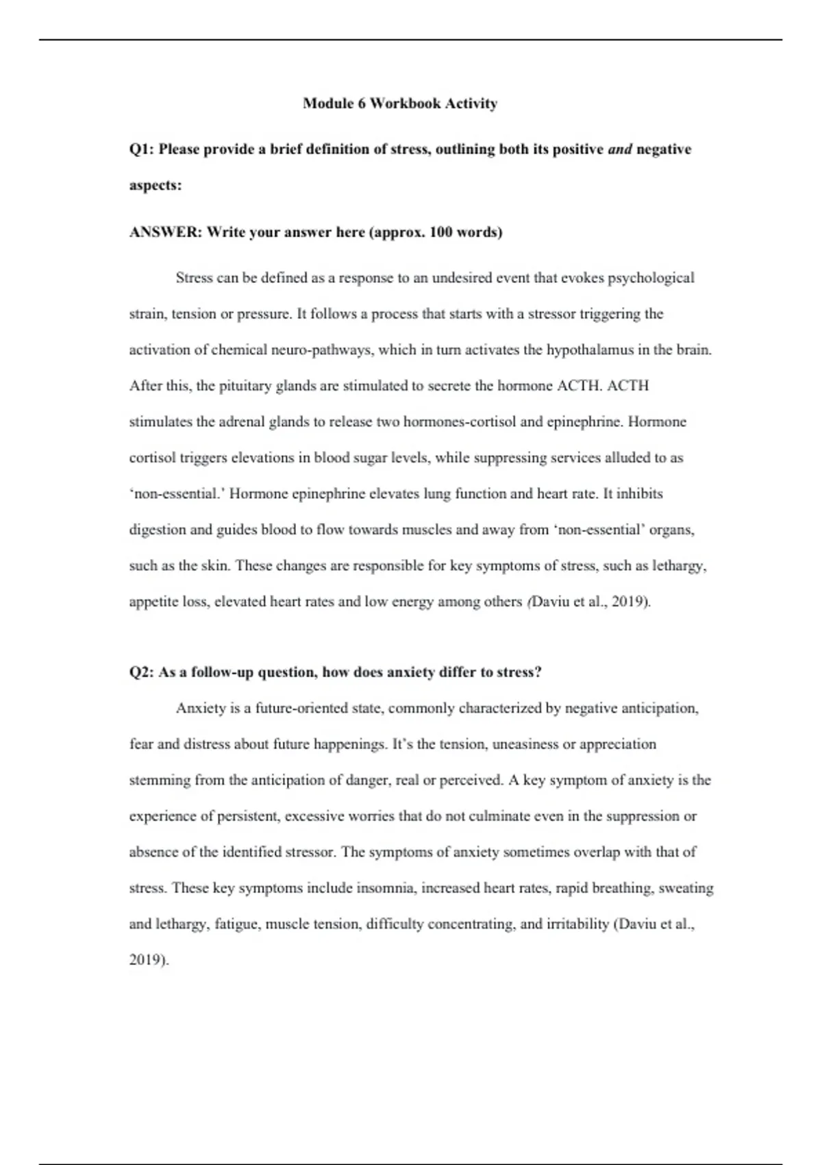 Q1: Please provide a brief definition of stress, outlining both its positive and negative
