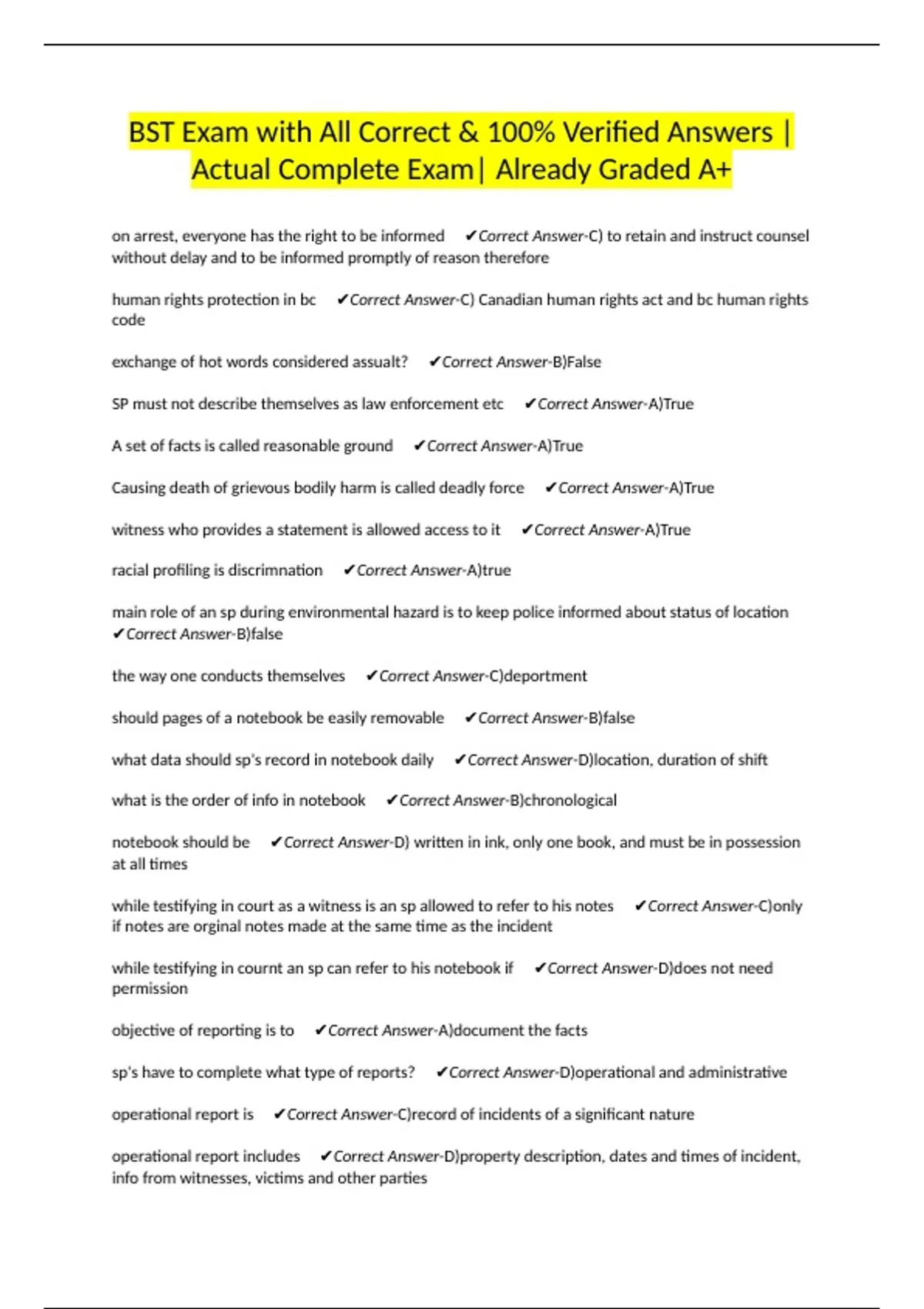 BST Exam with All Correct & 100% Verified Answers |Actual Complete Exam| Already Graded A+