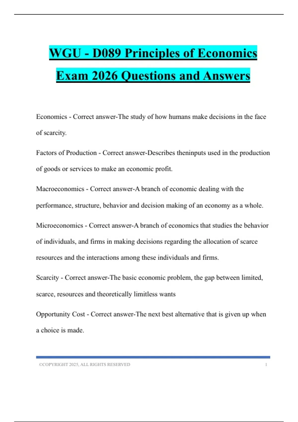 WGU - D089 Principles of Economics Exam 2026 Questions and Answers