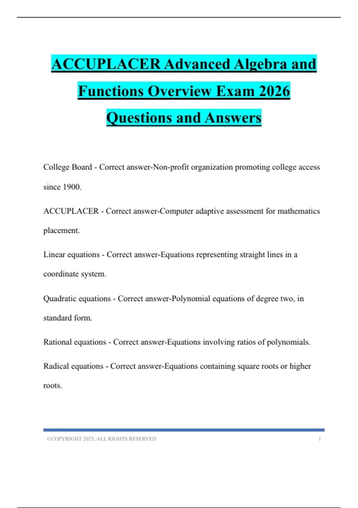 ACCUPLACER - Correct answer-Computer adaptive assessment for mathematics