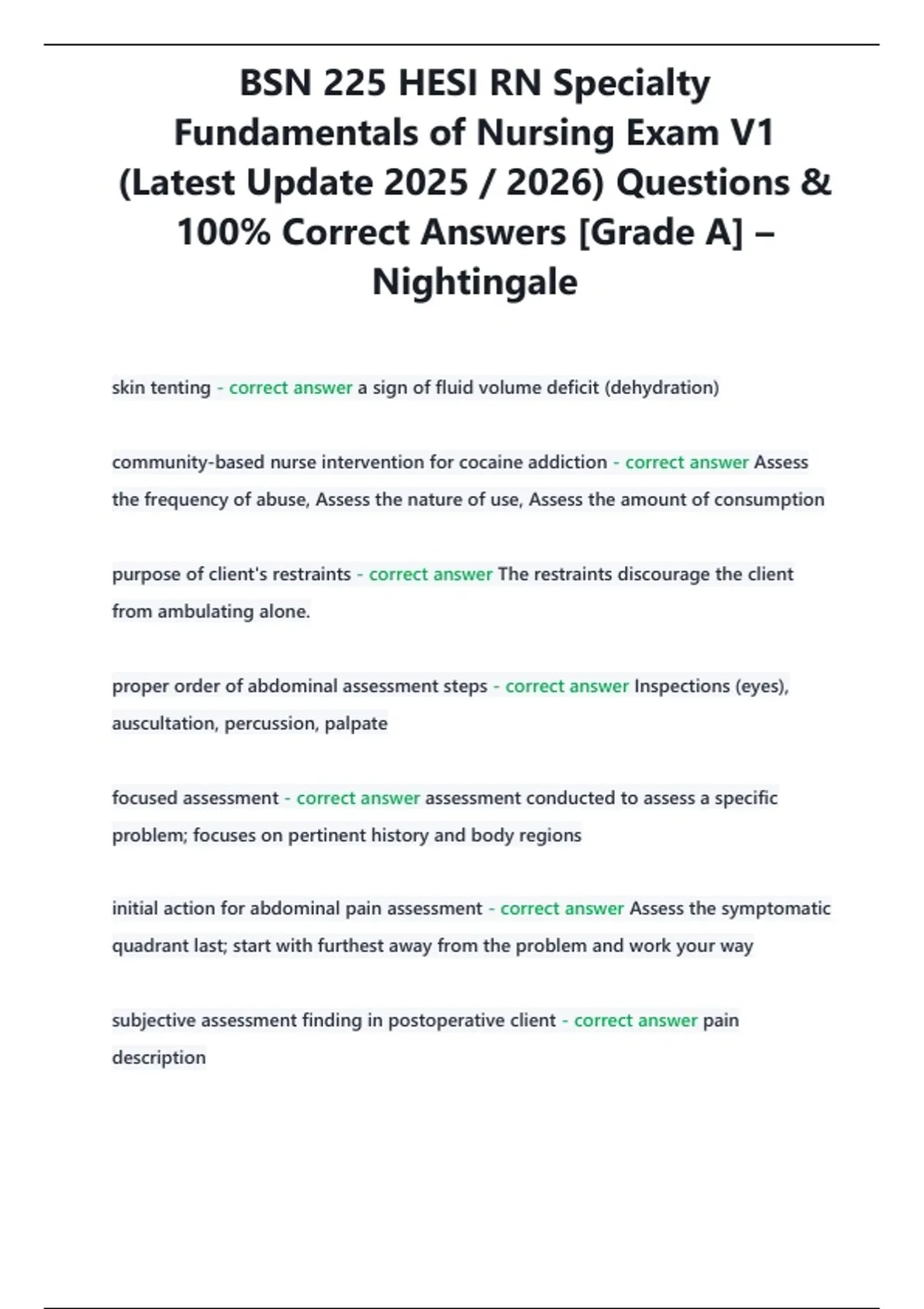 , BSN 225 HESI RN Specialty