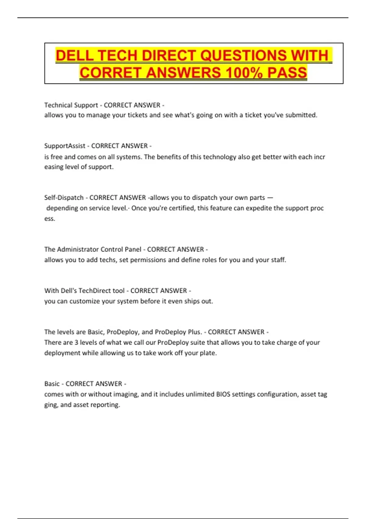 Technical Support - CORRECT ANSWER -