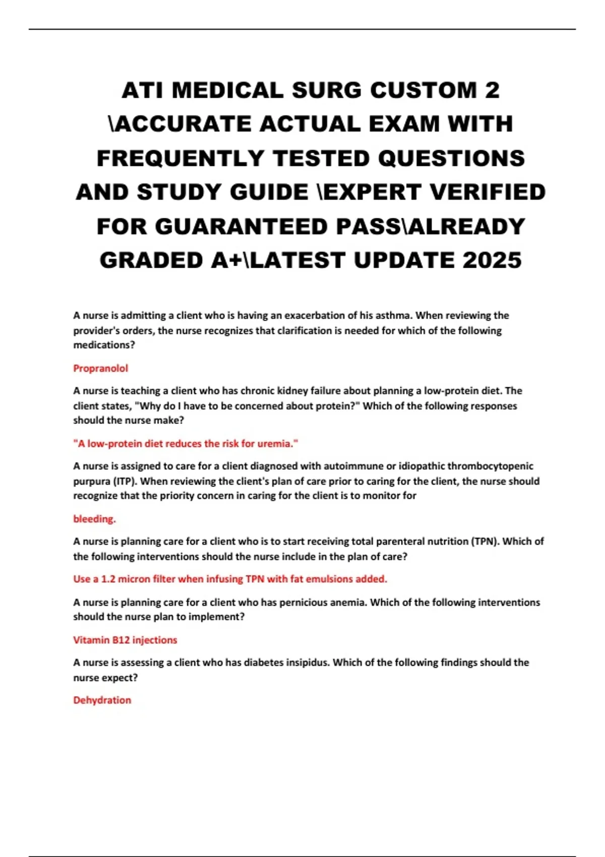 ATI MEDICAL SURG CUSTOM 2 ACCURATE ACTUAL EXAM WITH FREQUENTLY TESTED QUESTIONS AND STUDY GUIDE EXPERT VERIFIED FOR GUARANTEED PASSALREADY GRADED A+LATEST UPDATE 2025