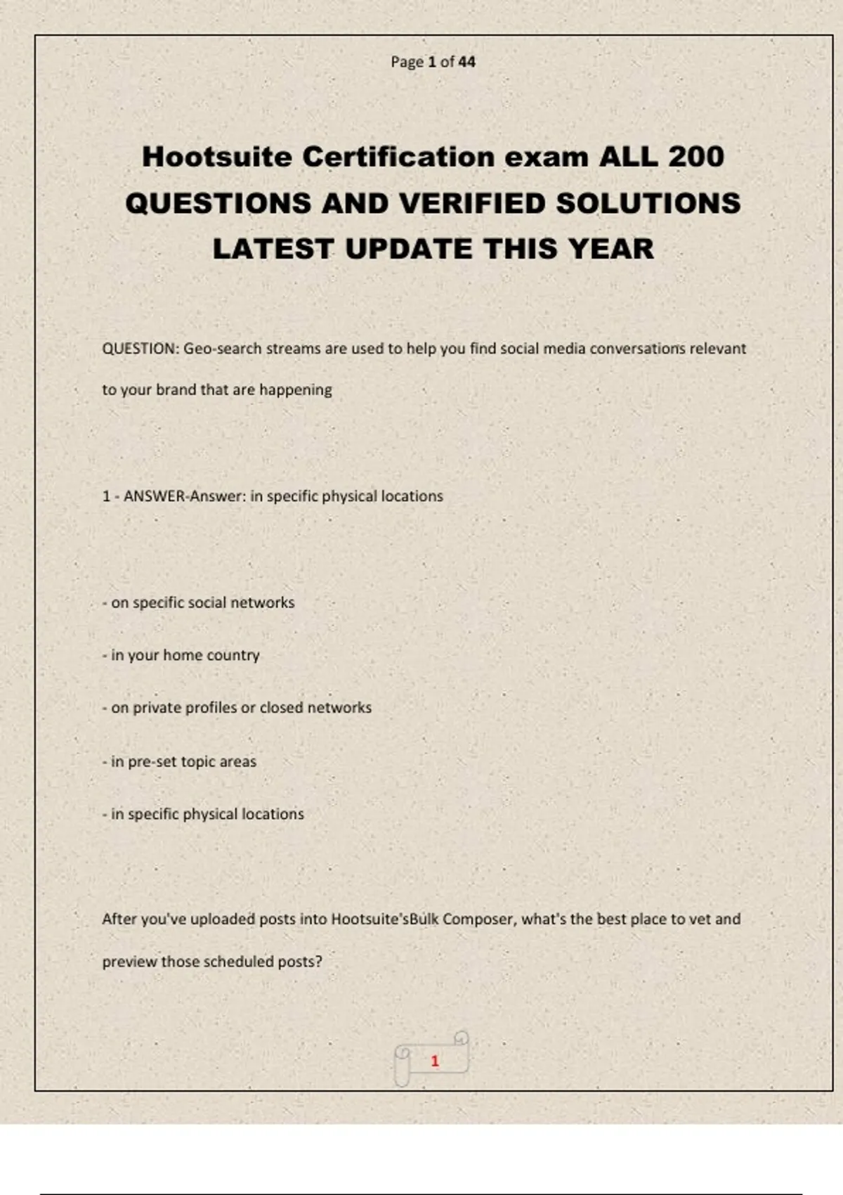 Hootsuite Certification exam ALL 200 QUESTIONS AND VERIFIED SOLUTIONS LATEST UPDATE THIS YEAR