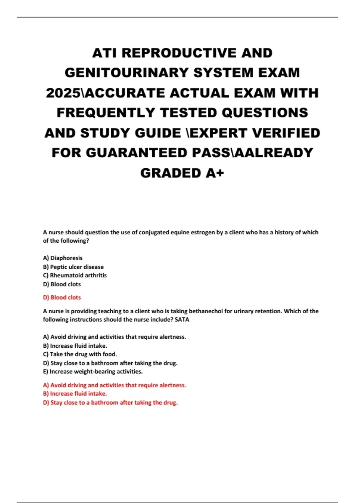 ATI REPRODUCTIVE AND GENITOURINARY SYSTEM EXAM 2025ACCURATE ACTUAL EXAM WITH FREQUENTLY TESTED QUESTIONS AND STUDY GUIDE EXPERT VERIFIED FOR GUARANTEED PASSALREADY GRADED A+