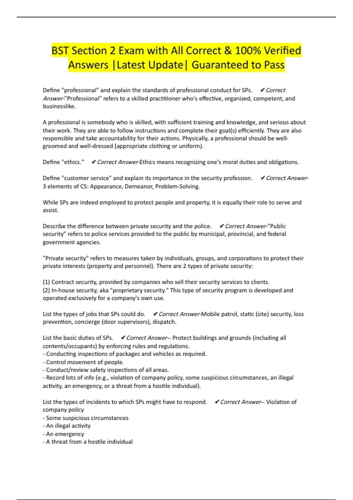 Answers |Latest Update| Guaranteed to Pass