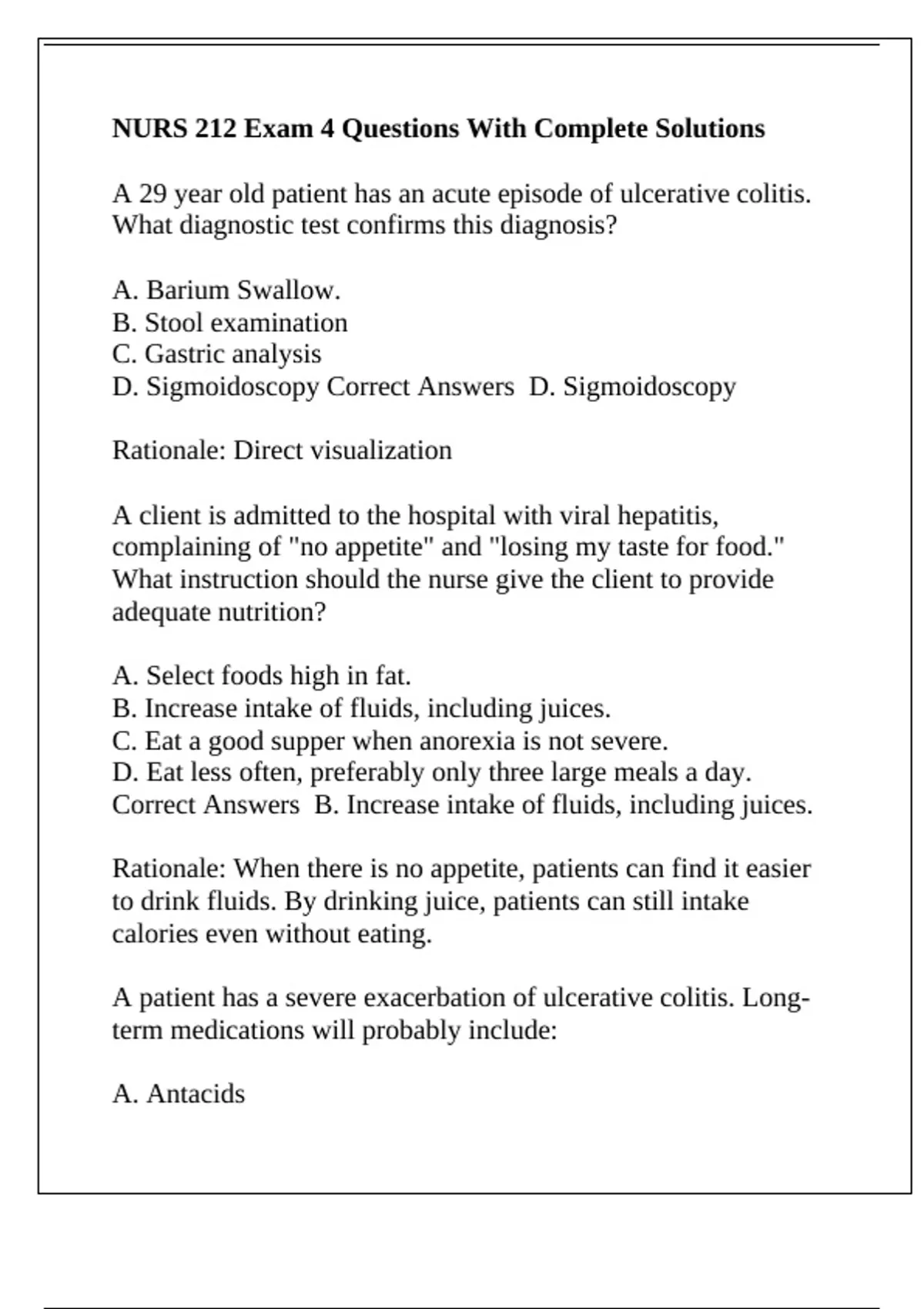 D. Sigmoidoscopy Correct Answers D. Sigmoidoscopy