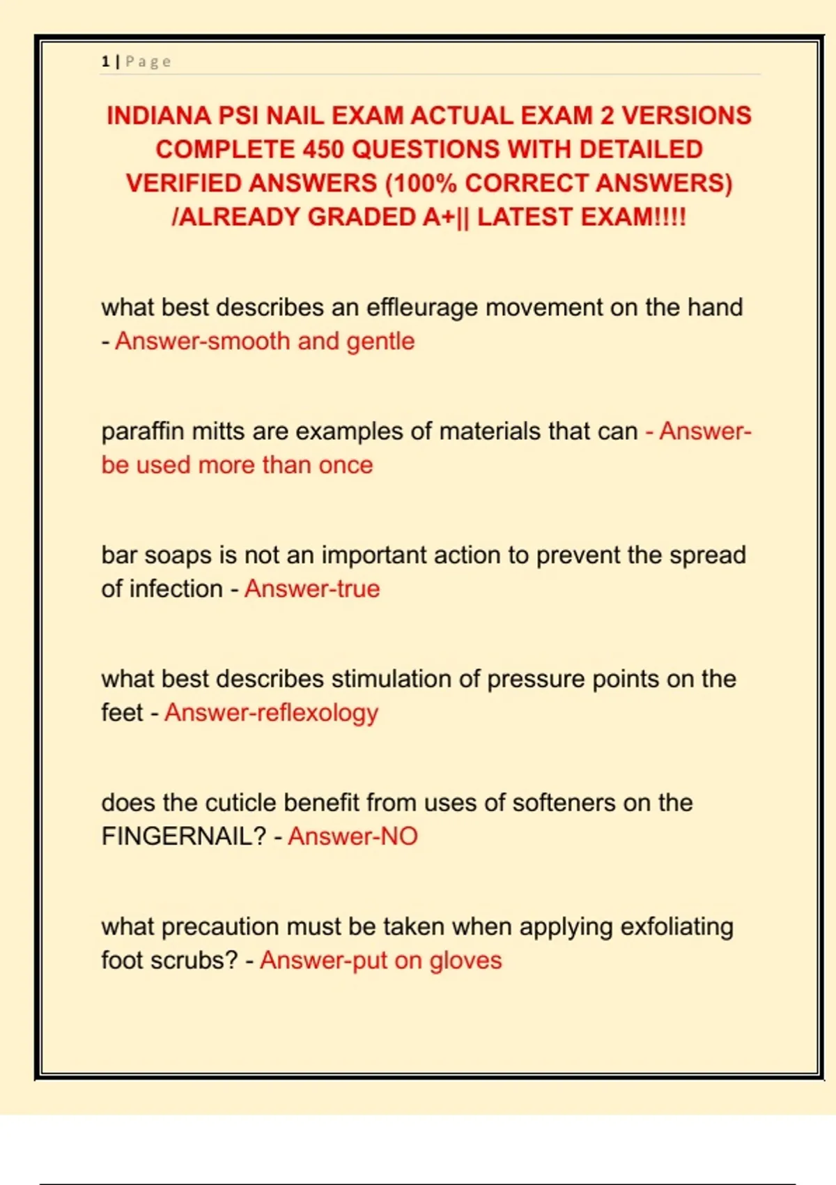 INDIANA PSI NAIL EXAM ACTUAL EXAM 2 VERSIONS