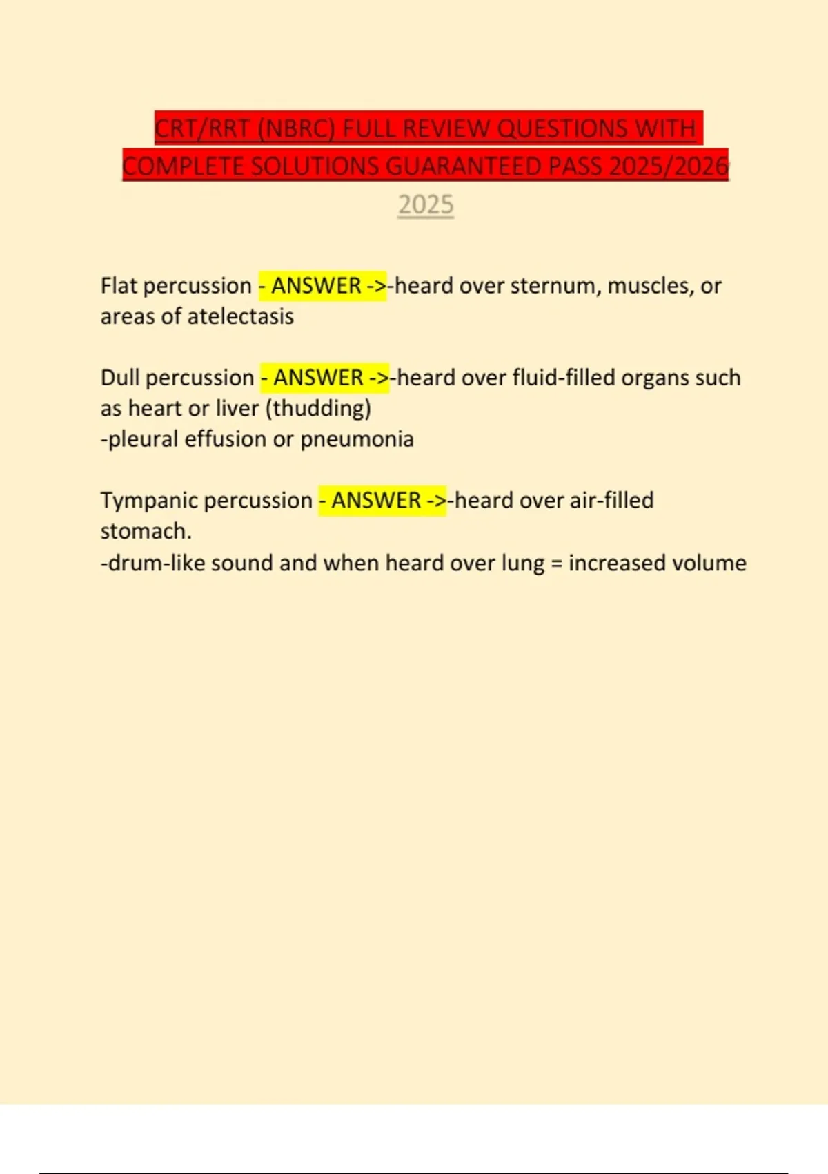 ,Hyperresonant - ANSWER ->-found where pneumothorax or