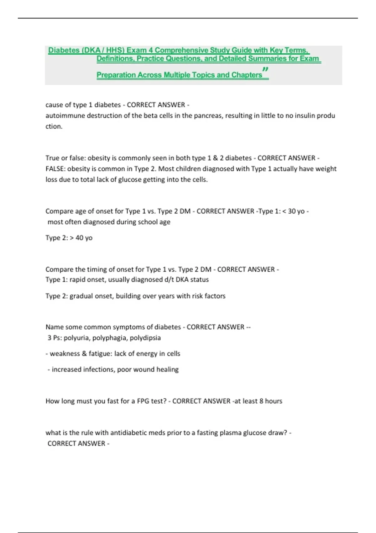 Compare age of onset for Type 1 vs. Type 2 DM - CORRECT ANSWER -Type 1: < 30 yo -