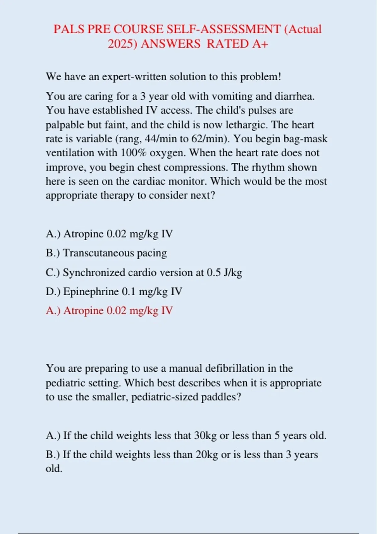 LATEST UPDATE 2025 – PALS Pre-Course Self-Assessment (Verified A+ Answers Included)