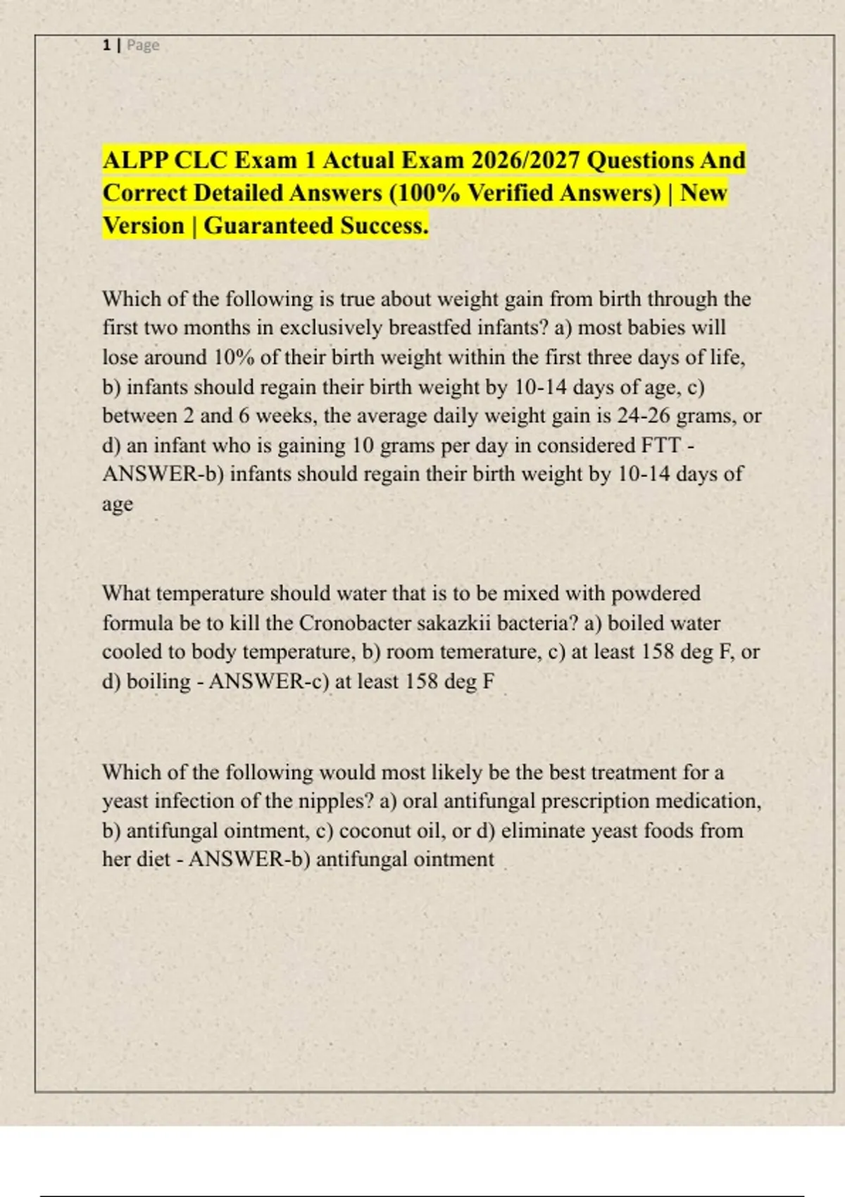 ALPP CLC Exam 1 Actual Exam 2026/2027 Questions And