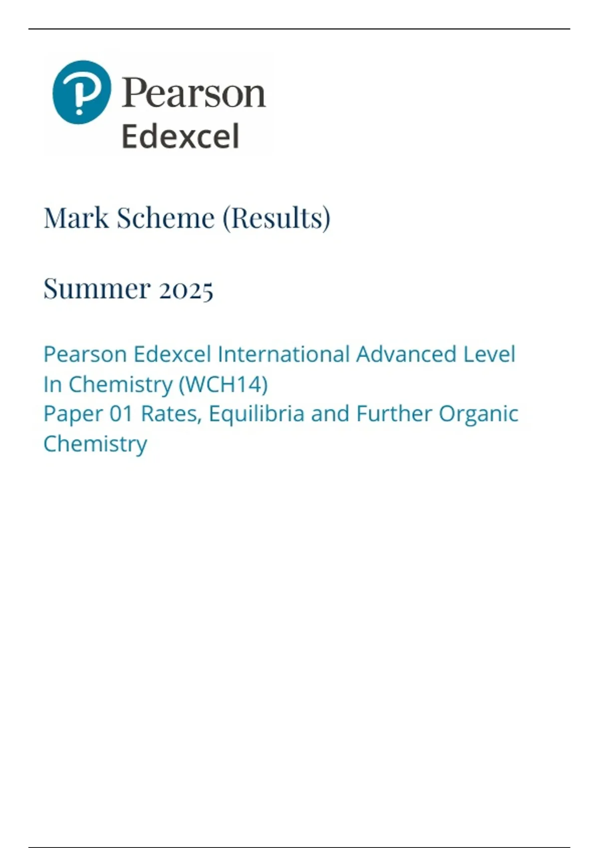 Pearson Edexcel International Advanced Level Chemistry UNIT 4 MAY 2025 MARK SCHEME: Rates, Equilibria and Further Organic Chemistry