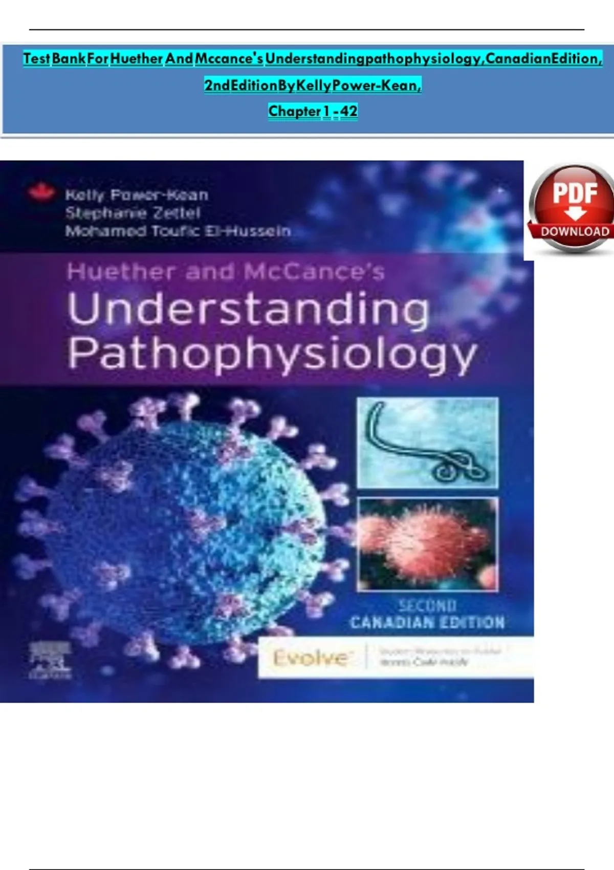Test bank For Huether and McCances Understanding Pathophysiology, Canadian Edition 2nd Edition by Kelly Power-Kean, Stephanie Zettel, Mohamed Toufic El-Hussein