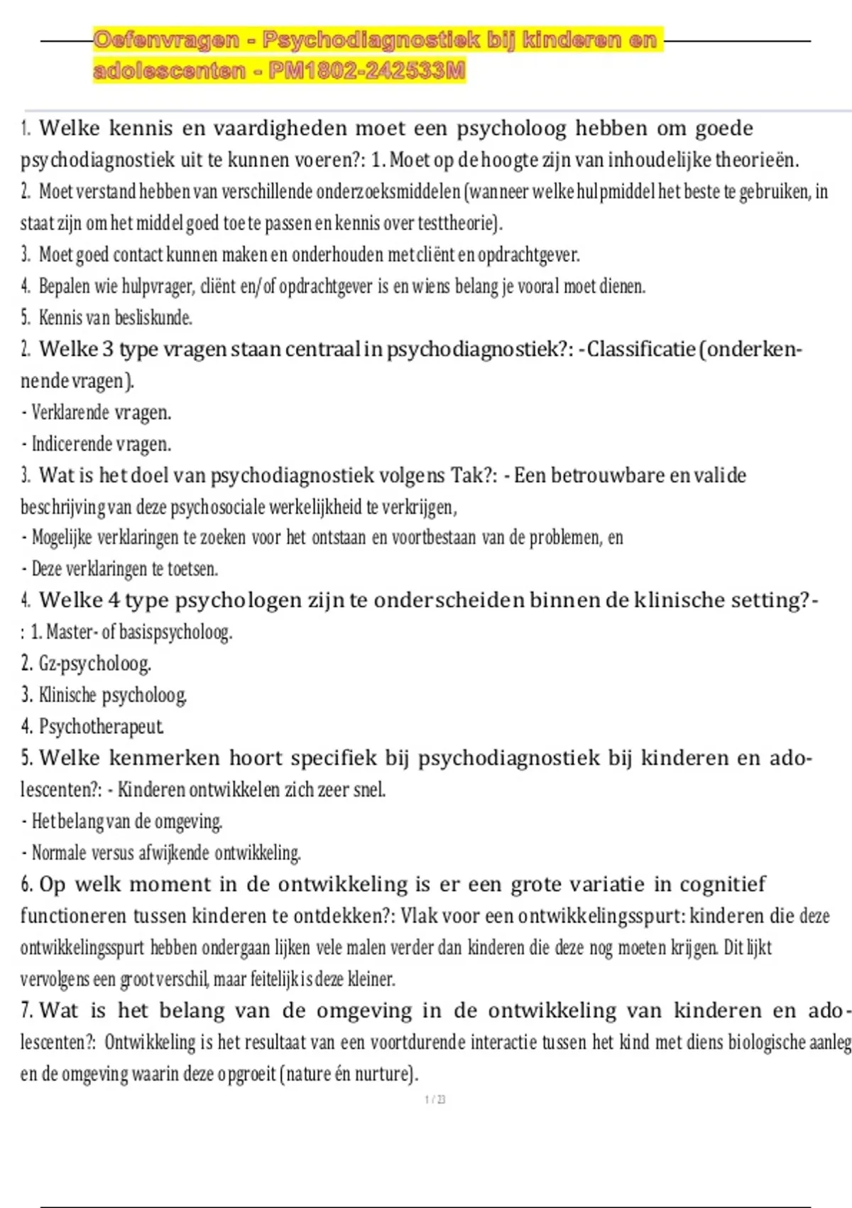 Psychodiagnostiek bij kinderen en adolescenten - PM1802 ...