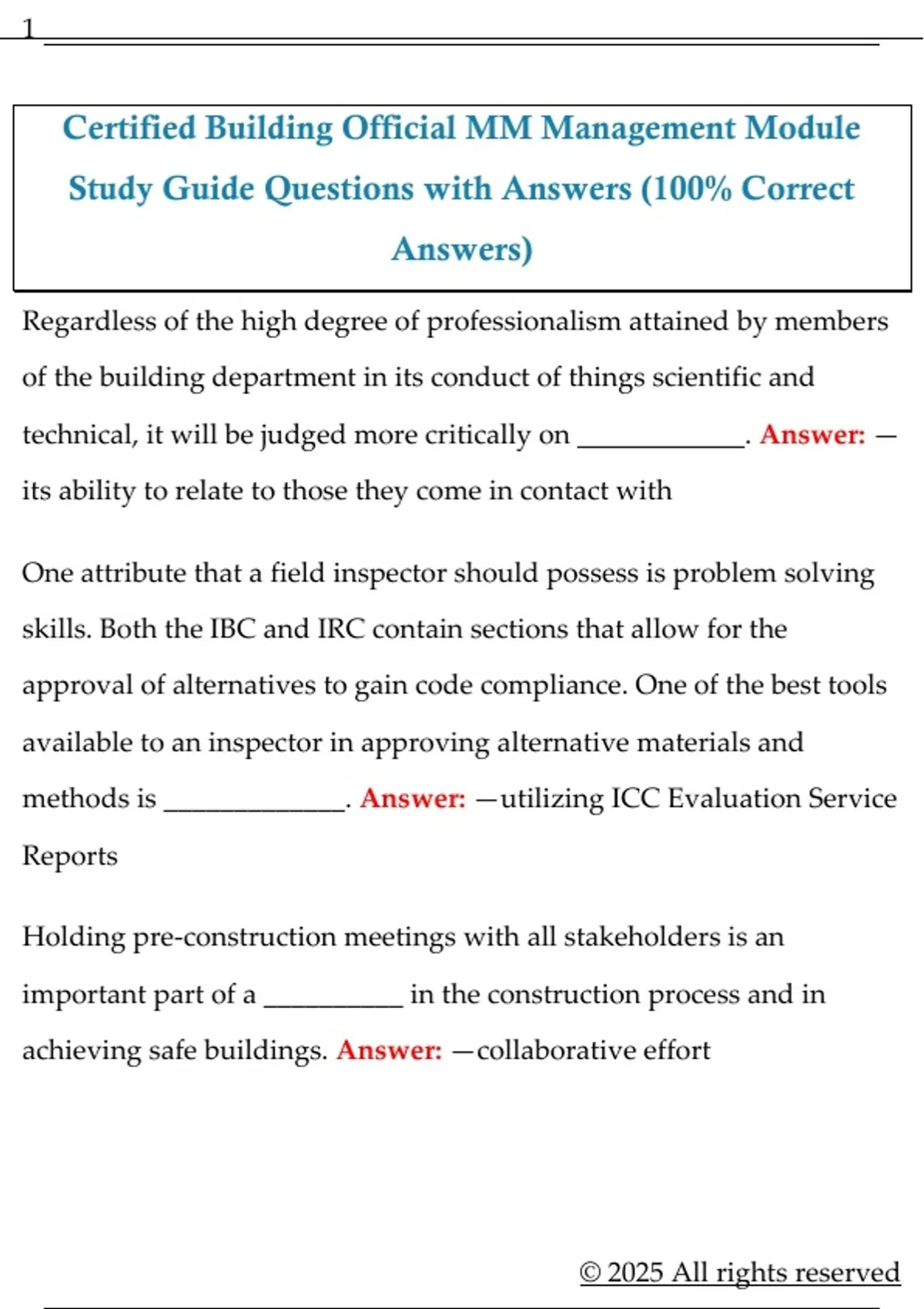 Certified Building Official MM Management Module Study Guide Questions with Answers (100% Correct Answers)
