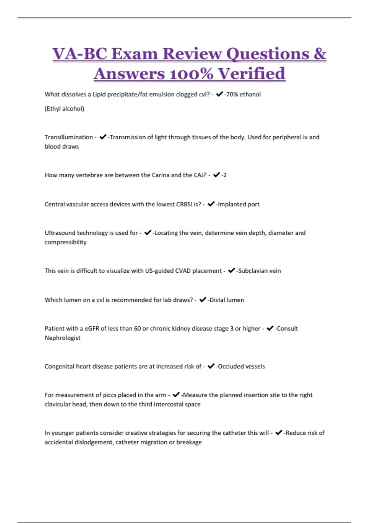 VA-BC Exam Review Questions & Answers 100% Verified