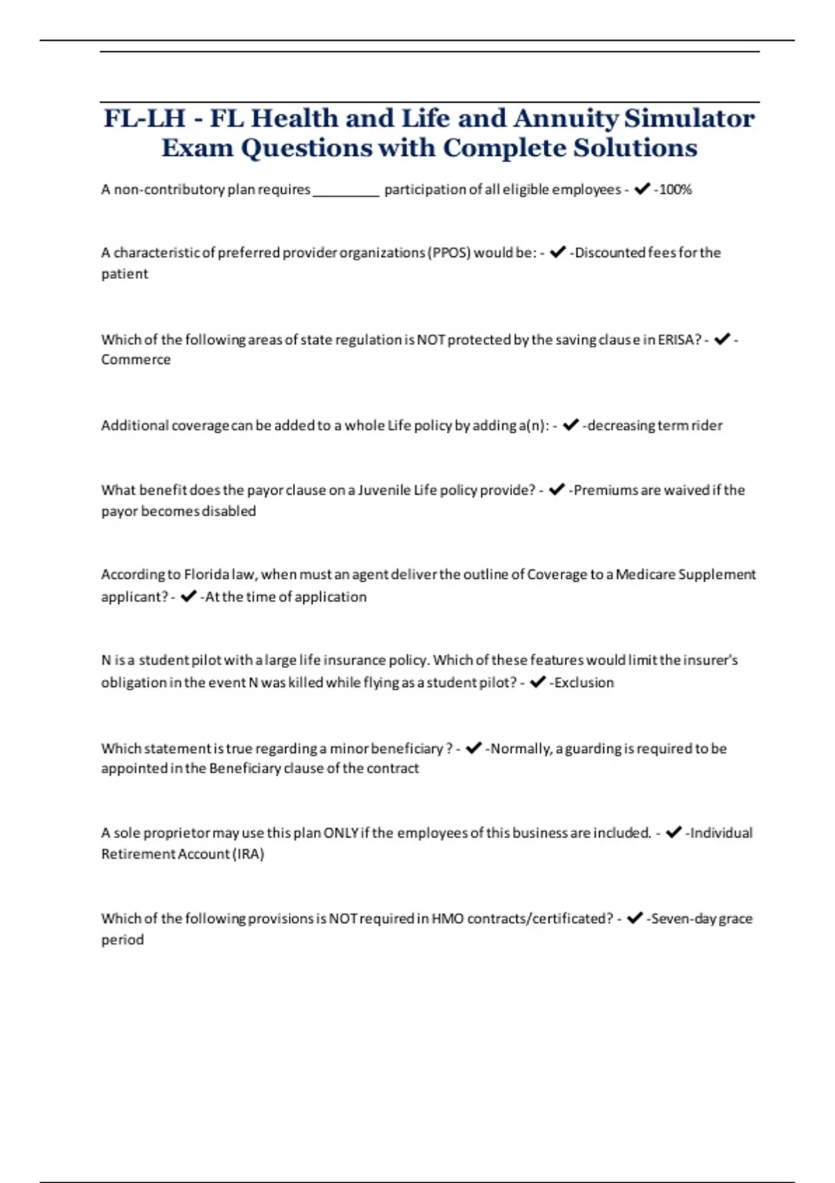 , FL-LH - FL Health and Life and Annuity Simulator Exam Questions with Complete Solutions