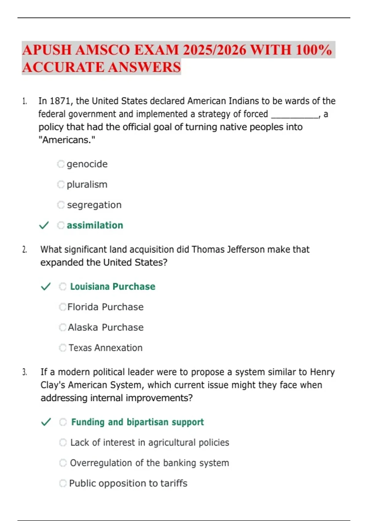 APUSH AMSCO EXAM 2025/2026 WITH 100%