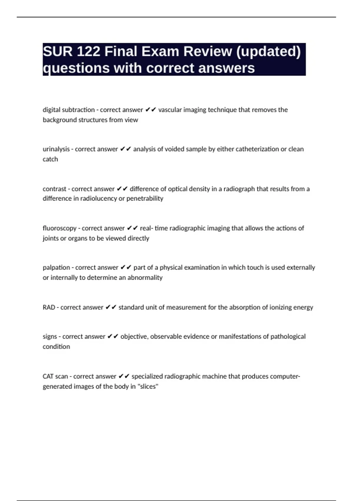 SUR 122 Final Exam Review (updated) questions with correct answers