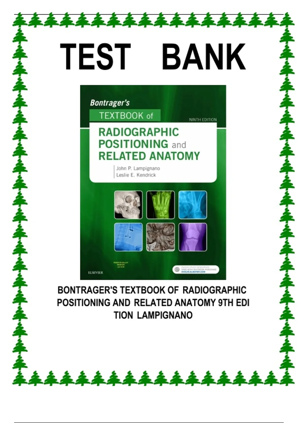 Test Bank for Bontrager's Textbook of Radiographic Positioning and Related Anatomy 9th Edition (Lampignano, 2017) , Chapter 1-20 | Complete Guide A+