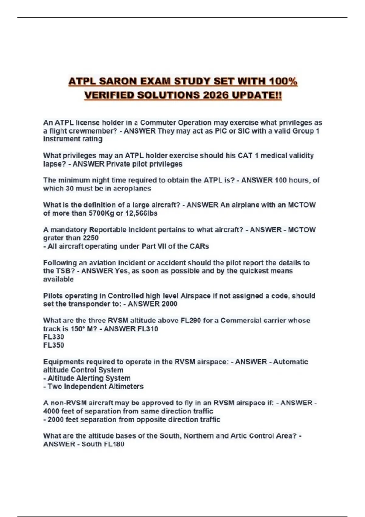 ATPL SARON EXAM STUDY SET WITH 100% VERIFIED SOLUTIONS 2026 UPDATE!!...