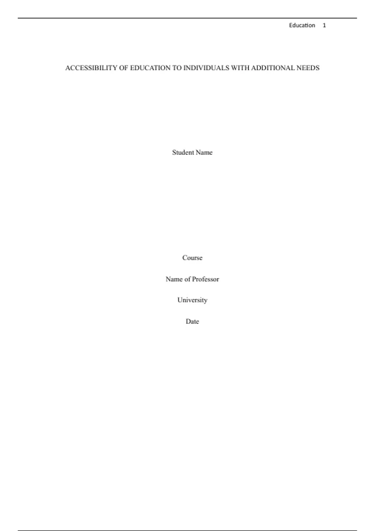 ACCESSIBILITY OF EDUCATION TO INDIVIDUALS WITH ADDITIONAL NEEDS